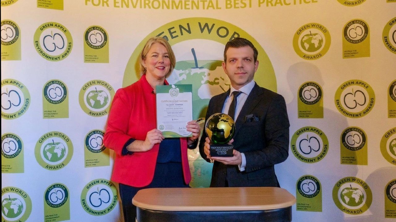 Dünyanın en yeşil ülkeleri, şirketleri ve topluluklarını belirlemek amacıyla 30 yılı aşkın süredir düzenlenen ve küresel ölçekte saygınlığı bulunan Green World Awards kapsamında, dünya genelinden yapılan yüzlerce başvuru arasından Sıfır Atık Projesi yeni bir başarı elde etti. Sıfır Atık, atık yönetimi kategorisinde ‘Yeşil Dünya Şampiyonluğu’ ödülüne layık görüldü. Çevre, Şehircilik ve İklim Değişikliği Bakanlığı Çevre Yönetimi Genel Müdürlüğü’nü temsilen Sıfır Atık Uygulamaları Dairesi Başkanı Ekrem Yıldırım, 13 Nisan’da Cardiff Kalesi’nde düzenlenen törende ödülü ve başarı belgesini teslim aldı.
